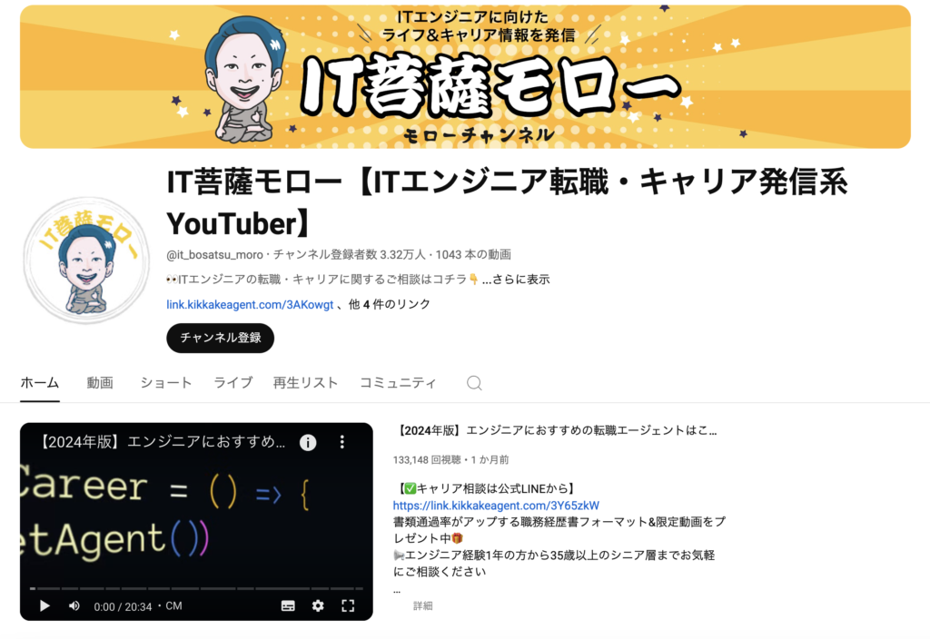 また、キッカケエージェントが提供しているYouTubeチャンネル「IT菩薩モロー【ITエンジニア転職・キャリア発信系YouTuber】」では、ほかのメディアでは取り上げられないエンジニア向け非公開IT求人や、IT転職やキャリアアップに欠かせない有益な情報をシェアしています。エンジニアの転職事例をインタビュー形式で発信しているため、なかなか自分がやりたいことが見つけられない人も自らを深掘りし、見つめ直すための機会になります。是非ご活用ください。