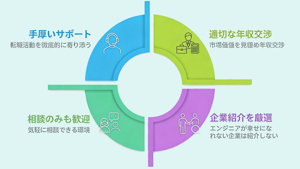 AWSエンジニアとして働くのがきついと感じた場合は、IT業界専門の転職エージェントに相談するのもおすすめです。キャリアアドバイザーによる客観的なスキル評価によって、自分では気づかない強みや市場での適正年収を把握できるでしょう。