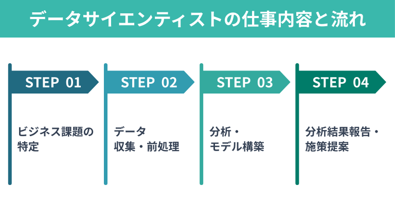 データサイエンティストとは、統計・機械学習とビジネス理解を用いてデータから洞察を導き、意思決定・業務改善・新規価値創出に直結させる専門職です。分析だけで終わらず、課題特定→データ整備→モデル化→実装→効果検証までを一気通貫で担い、分析結果を報告してビジネスの意思決定や研究開発に貢献します。