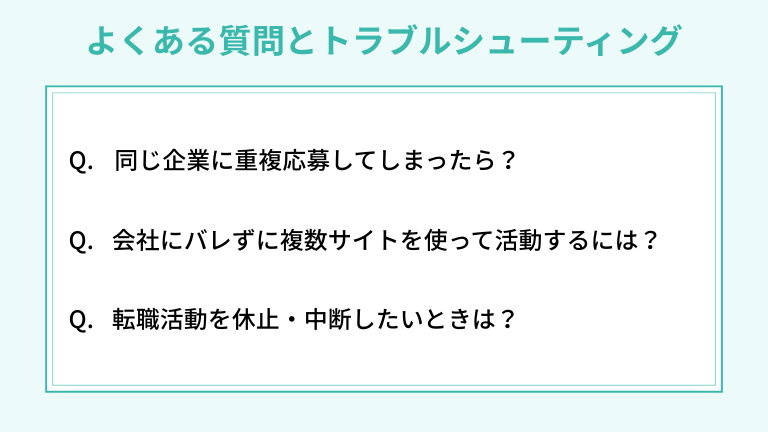 初めての転職では、以下の観点から転職エージェントの複数登録に不安を感じる方も多いです。
