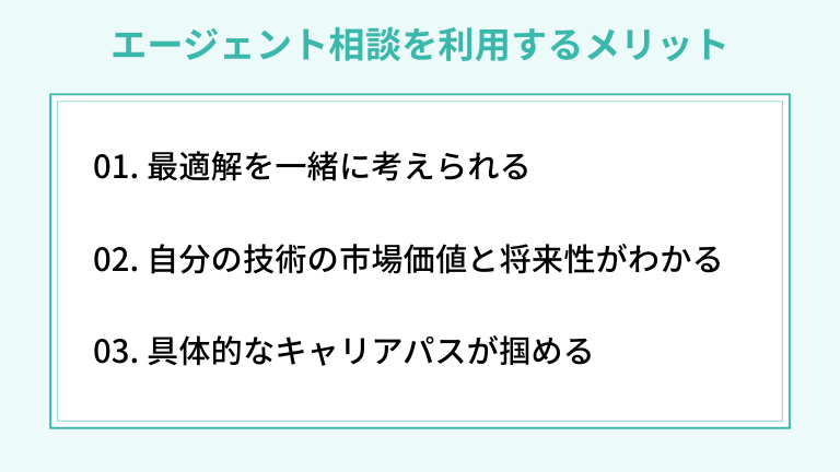 今すぐ無料で相談するエンジニアがエージェント相談を利用する3つのメリット