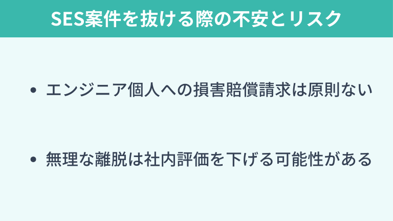 しかし、正しい手順を踏めば過剰に心配する必要はありません。ここでは、SES案件を離脱する際に感じやすいリスクと、その正しい捉え方について解説します。