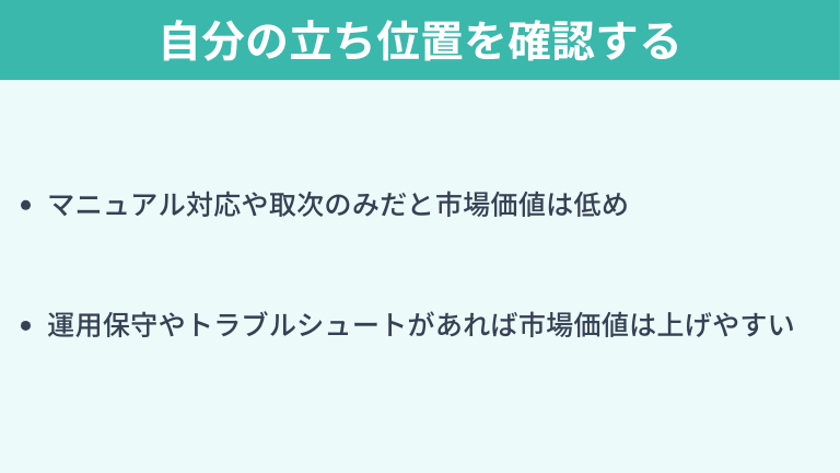 運用保守やトラブルシュートがあれば市場価値は上げやすい