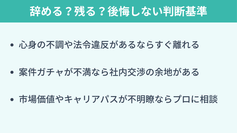 今すぐ無料で相談する辞めるべき?残るべきか?後悔しないための判断基準