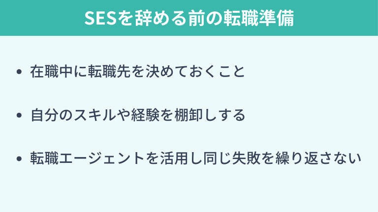 今すぐ無料で相談するSESを辞める前にやるべき転職の準備
